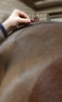 Bei dem Dry Needling handelt es sich um eine spezielle Technik, bei der mit sterilen Einwegakupunkturnadeln myofasziale Triggerpunkte sowie die betroffene Muskelkette behandelt wird. Dry Needling entstand aus klinischen Beobachtungen, bei denen festgestellt wurde, dass ein Stich direkt in den Triggerpunkt erfolgreich ist. Patienten mit chronischen oder myofaszialen Schmerzen reagieren oft sehr gut auf die Anwendung. Andrea Schachinger ist die Erfinderin des Equinen Dry Needlings und hat diese Methode in knapp 20 Jahren entwickelt, wobei diese natürlich auch weiterhin erweitert wird! Nur geprüfte Therapeuten sollten diese Methode anwenden!